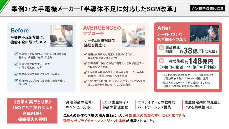 - 事例3:大手電機メーカー「半導体不足に対応したSCM改革」